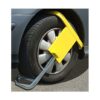 Riteņu blokators, standarta. Krāsa: dzeltena. Piemērots riteņiem līdz 225mm platumam un diametrā no 530mm līdz 660mm. Augstas drošības slēdzenes (iekļautas 3 gab.). Svars: 4,9kg.