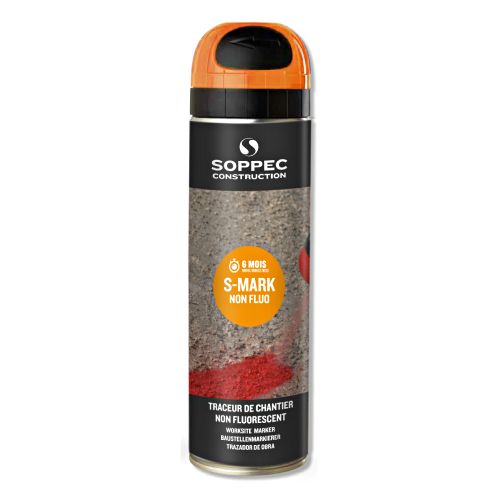 S MARK luminiscējoša krāsa marķēšanai (aerosols), oranža, 500ml. Kastē 12gab. Izmantojama arī uz mitrām virsmām. Ātri žūstoša (~10min.). Piemērota īstermiņa lietošanai – 6 mēnešu noturība. Piemērota marķēšanai uz asfalta, betona, akmens, grants, zemes, kokiem, smiltīm u.c. Izmantojama temperatūrā no -20 līdz + 50 grādiem pēc Celsija. Ar 1 aerosola baloniņu var noklāt ~55m (2cm platumā).