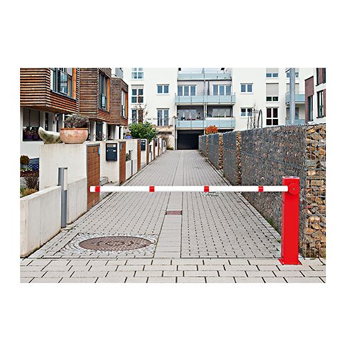 Elektriskā paceļamā barjera. Garums: 2000mm, kopējais garums: 2150mm, barjeras d=60mm. Darbojas uz integrētu saules moduli. Nav nepieciešams elektrības pievads. Sarkans alumīnija korpuss, balta barjera ar sarkanu atstarojošu lentu (barjeras d=60mm). Komplektā tālvadības pults un akumulators (6V). Tālvadības pults darbības diapazons – 12m. Stiprināma ar 6 skrūvēm. Svars: 30,5kg.