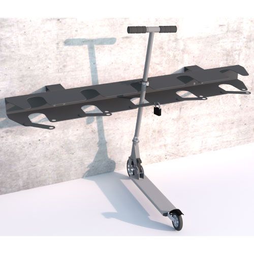 Skrejriteņu statīvs stiprināms pie sienas. Statīva platums 150cm, platums 32cm. Pieejamie materiāli: cinkots tērauds, nerūsējošs tērauds, cinkots un krāsots tērauds.