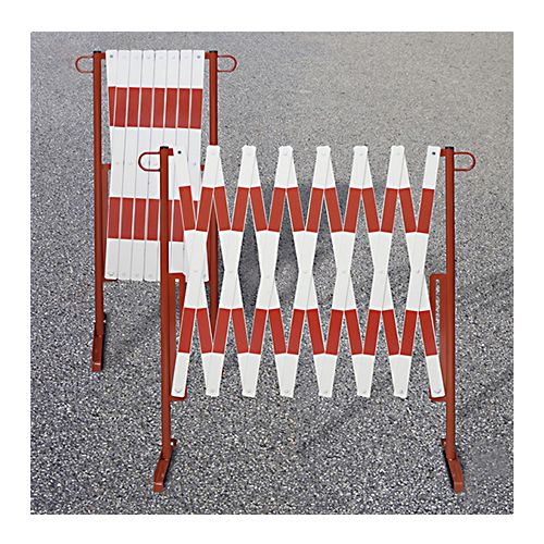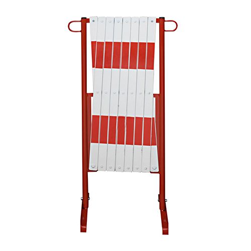 Šķērveida metāla barjera. Maksimālais garums 4m, saliektā veidā 50cm. Barjeras augstums 1m. Ar sarkaniem atstarojošiem elementiem. Svars: 24kg.