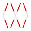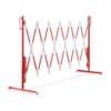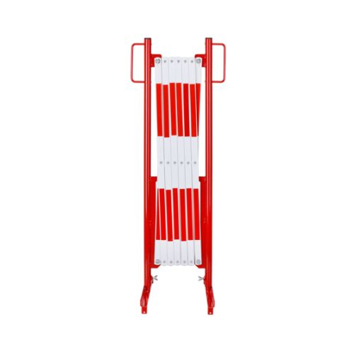 Šķērveida barjera. Izgatavota no pulverkrāsota metāla (metāla biezums 4mm) ar sarkanām atstarojošām uzlīmēm. Izmēri: garums 3600mm, platums 505mm, augtums 985mm. Platums asapiestā veidā 335mm, biezums saspiestā veidā 175mm. Krāsa: sarkanbalta. Izmantojama iekštelpās. Svars: 12kg.