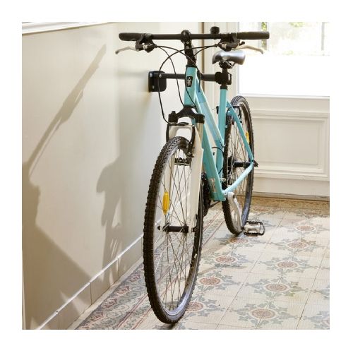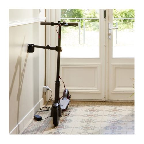 Skrejriteņa/velosipēda statīvs. Stiprināms pie sienas. Ļauj novietot visu veidu skrejriteņus un velosipēdus paralēli sienai vai fiksētā veidā, nepieskaroties sienai. Iataupa vietu (statīvu var salocīt, kad tas netiek izmantots). Piemērots visu veidu caurulēm (velosipēda rāmim, sēdeklim, skrejriteņa stūrei). Statīvs galā aprīkots ar putu balstiem un pievilkšanas skrūvi, kas notur skrejriteni vai velosipēdu vietā. Izgatavots no tērauda. Izmēri: atvērtā veidā 156x105x357mm, aizvērtā veidā 156x350x63mm. Svars: 1kg.