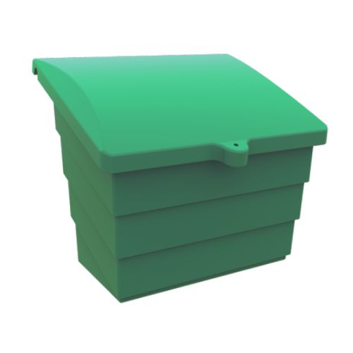 Smilts/sāls plastmasas konteiners. Krāsa: zaļa. Ietilpība 150L (220kg). Izmēri: platums 642mm, dziļums 798mm, priekšējās daļas h=470mm, aizmugurējās daļas h=690mm. Konteiners izgatavots no augstas kvalitātes polietilēna (MDPE), kas izturīgs pret mainīgiem laika apstākļiem, UV stariem un mehāniskiem bojājumiem. Konteiners aprīkots ar vāku, kas piestiprināts pie korpusa ar nerūsējoša materiāla eņģēm. Īpaši izstrādātā forma atvieglo transportēšanu un uzglabāšanu (var sakraut vienu konteineru citā). Izturīgs un elastīgs. Plakanā pamatne ļauj izņemt smilšu un sāls maisījumu no konteinera līdz pašam galam. Ir iespējams izveidot caurumu konteinera aizvēršanai ar piekaramo atslēgu. Konteiners ir pilnībā pārstrādājams. Pieejamās standarta krāsas: dzeltena, zaļa, zila, pelēka. 5 gadu garantija (konteinera korpusam).