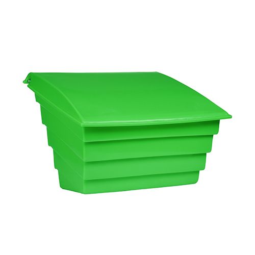 Smilts/sāls plastmasas konteiners (zaļš) – ietilpība 250L (360kg). Platums: 976mm, dziļums: 756mm, augstums: 795mm. Konteiners izgatavots no augstas kvalitātes polietilēna, kas izturīgs pret laika apstākļiem. Nemaina krāsu saules staru ietekmē, nerūsē, neplīst, ir viegls. Konteineru var novietot jebkurā vietā, kalpo daudzus gadus. Pieejamās krāsas: dzeltena, zaļa un zila. Svars: 18kg.