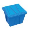 Smilts/sāls plastmasas konteiners. Krāsa: zila. Ietilpība 200L. Izmēri: platums 720mm, dziļums 800mm, priekšējās daļas h=570mm, aizmugurējās daļas h=690mm. Konteiners izgatavots no augstas kvalitātes polietilēna (MDPE), kas izturīgs pret mainīgiem laika apstākļiem, UV stariem un mehāniskiem bojājumiem. Konteiners aprīkots ar vāku, kas piestiprināts pie korpusa ar nerūsējoša materiāla eņģēm. Īpaši izstrādātā forma atvieglo transportēšanu un uzglabāšanu (var sakraut vienu konteineru citā). Izturīgs un elastīgs. Plakanā pamatne ļauj izņemt smilšu un sāls maisījumu no konteinera līdz pašam galam. Ir iespējams izveidot caurumu konteinera aizvēršanai ar piekaramo atslēgu. Konteiners ir pilnībā pārstrādājams. Pieejamās standarta krāsas: dzeltena, zaļa, zila, pelēka. 5 gadu garantija (konteinera korpusam). Svars: 14kg.