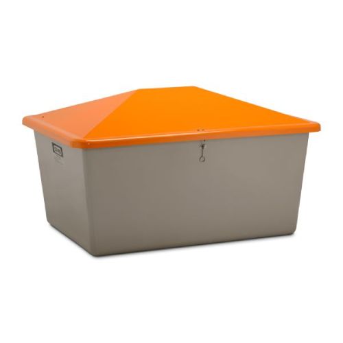Smilts/sāls konteiners. Ietilpība: 1500l. Krāsa: pelēka ar oranžu vāku. Izmēri: garums 1840mm, platums 1430mm, augstums 1040mm. Izgatavots no pastiprinātas stiklšķiedras. Ar nerūsējošā tērauda slēdzamiem vāka balstiem. Korozijas un laika apstākļu izturīgs. Piemērots smilts, sāls vai kāda cita materiāla uzglabāšanai ziemas/vasaras periodos. Svars: 70kg.