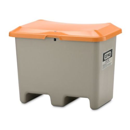 Smilts/sāls konteiners ar iekrāvēja ejām (viegli ar iekrāvēju ratiņiem vai iekrāvēja dakšām pārvietot uz citu vietu). Ietilpība: 200l. Krāsa: pelēka ar oranžu vāku. Izmēri: garums 890mm, platums 600mm, augstums 690mm. Izgatavots no pastiprinātas stiklšķiedras. Korozijas un laika apstākļu izturīgs. Nerūsējošā tērauda aizbīdņi. Piemērots smilts, sāls vai kāda cita materiāla uzglabāšanai ziemas/vasaras periodos. Svars: 12.8kg.