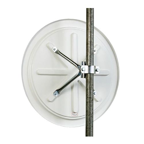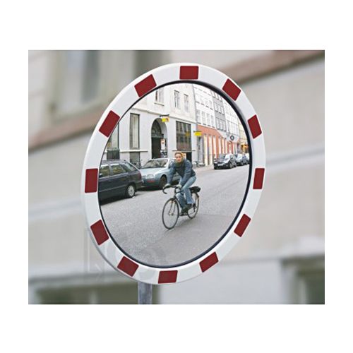 Spogulis, sarkans/balts, apaļš. Diametrs: 60cm. Aprīkots ar 2. atstarošanas klases uzlīmi (spogulis īpaši labi pamanāms sliktos laika apstākļos un tumsā). Izgatavots no polikarbonāta. Komplektā ar 4-punktu stiprinājumu. Redzamības diapazons: 9-15m. UV staru izturīgs, iztur līdz 117km/h lielu vēja spēku. Spoguli var novietot dažādos leņķos. Svars: 6,3kg. 5 gadu garantija. TÜV sertifikāts.