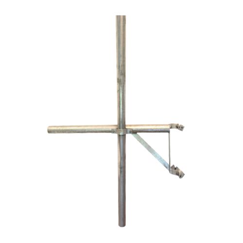 Staba kronšteins ar stiprināšanas cauruli uz konsoles (paredzēts 2 ceļa zīmēm, max. d=600mm). Materiāls: tērauds. Elementa konstrukcija apstrādāta ar karstās cinkošanas metodi atbilstoši LVS EN ISO1461 prasībām, kura nodrošina augstas kvalitātes aizsardzību pret metāla koroziju. Staba kronšteins paredzēts pagaidu un/vai 2 (divu) stacionāro ceļa zīmju stiprināšanai ar max. diametru 600 mm.