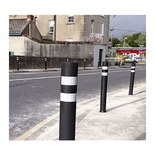 Stabiņš – lokans. Betonējams. Ar divām atstarojošām lentām baltā krāsā. Stabiņa krāsa: melna. Izmēri: augstums 1000mm, diametrs 100mm. Lieliska izturība pret triecieniem. Trieciena gadījumā stabiņš atgriežas sākotnējā stāvoklī. Augsta izturība pret berzi. Izgatavots no 100% pārstrādāta materiāla. Piemērots ceļu, celiņu u.c. vietu norobežošanai.