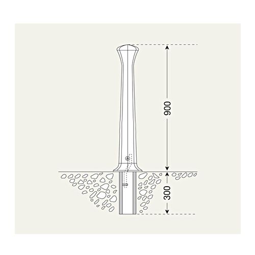 Alumīnija stabs DISSELDORF – ar trijstūrveida atslēgu, betonējams. Krāsa: antracīta pelēks (RAL 7016). Izmēri: augstums virs pamatnes 900mm, augstums zem pamatnes 400mm. Svars: 13kg.