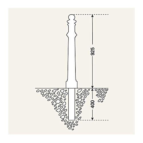 Alumīnija stabs WAPPEN – ar 2 ķēdes cilpām, betonējams. Krāsa: atracīta pelēks (RAL 7016). Izmēri: diametrs 85mm, augstums virs pamatnes 925mm, augstums zem pamatnes 400mm. Svars: 12kg.