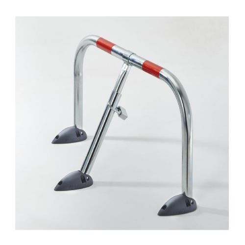 Stāvvietu barjera -Trīspunktu STANDART ar gumijas pamatnēm, slēdzama ar piekaramo atslēgu (komplektā 2 atslēgas). Izgatavota no nerūsējošā tārauda caurulēm d=38mm. Barjera aprīkota ar 2 atstarojošām sarkanām lentām. Stiprināma pie pamatnes ar skrūvēm (skrūves nav iekļautas). Iztur 10t kompresiju. Spēcīgas pamatnes pēdas.