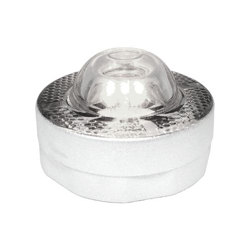 Stikla atstarotājs. Krāsa: balta. Izmēri: d=101mm, h=64mm. Saules panelis: 2V/140mAh Ni-Mh baterijai vai 5V/70mAh Litija baterijai. Akumulators: 1.2V/600mAh, 1.2V/1300mAh, 1.2V/1500mAh BI-Mh baterijai vai 3.2V/500mAh Litija baterijai. Darba režīmi: mirgojošs vai pastāvīgs. Aprīkots ar 6gab. ļoti gaišām LED diodēm (d=5mm). Redzes diapazons: vairāk kā 800m. Gaismas intensitāte: 400-500lx. Darba temperatūra: -20 līdz ~+60 grādi pēc Celsija. Ūdensizturības klase: IP68. Darbības ilgums: vairāk kā 200h mirgojošajam režīmam/50-72h pastāvīgajam režīmam atkarībā no baterijas lieluma. Darbības ilgums: 3-5 gadi NI-mAh baterijai; 5-8 gadi Litija baterijai. Saspiešanas pretestība: >30T. Materiāls: rūdīts stikls. Stiprināms asfaltā vai betonā ar speciālu līmi. Vienkārša un ātra montāža. Uzstāda ceļa ietvju malās, ceļa barjerās, tuneļos u.c.
