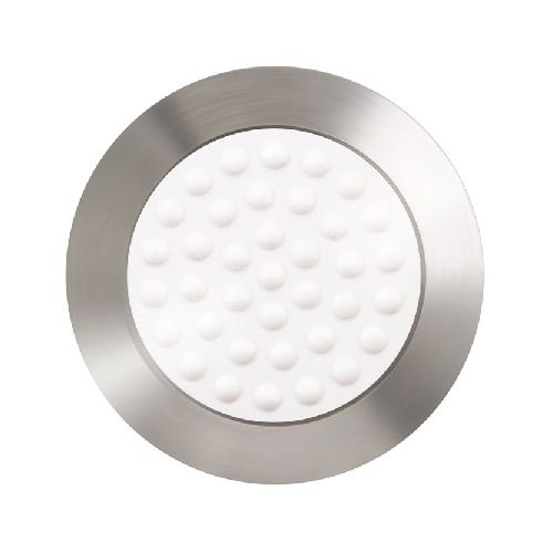 Taktilais elements K-TPU ar metinātu tapu. Ar poliuretāna ieliktni, nošķelta konusa forma. Izmērs: diametrs 35mm, augstums 5mm. Materiāls: AISI 316L tipa nerūsējošais tērauds, kurš ir izturīgs pret koroziju, skābēm, hlorīdu, oksidāciju, saules gaismu, pret sliktiem laika apstākļiem. Tiek izmantots kā taustes indikators – vājredzīgo vadlīniju elements. Nodilumizturīgs, triecienizturīgs, neslīdoša, reljefa pretslīdes virsma. Pielieto ieejas zonās, pieturās, pie gājēju pārejām, ielu krustojumos, lidostās, dzelzceļa stacijās u.c. vietās, kur nepieciešams nodrošināt taustes marķējumu zonas uz virsmām. Poliuretāna ieliktnim pieejamas dažādas krāsas RAL toņos. Ātra un vienkārša uzstādīšana. Izmanto uz betona, karmikas flīzēm, asfalta, koka grīdām u.c. virsmām. Pēc montāžas droši staigāt pāri var pēc 24h. Izmantojams gan ārā, gan iekštelpās. Pieejams arī pašlīmējoša veida ar dažāda veida pašlīmējošajām lentām. Svars: 0.03kg. Montāža ar ķīmisko enkurlīmi/epoksīda līmi HILTI RE500 vai cita ražotāja (aptuvenais patēriņš – 1 tūbiņa (500ml) uz aptuveni 400-500gab. taktila elementu).