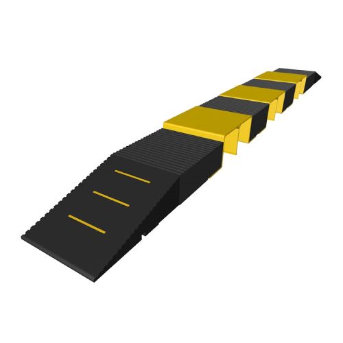 Tērauda kabeļu un šļūteņu aizsargs (rampa). Izmēri: 360x400x175mm, kanālu izmēri – platums 170mm, dziļums 170mm. Krāsa: dzeltena (RAL1028). Tērauda biezums 7mm, cinkots ar pulverkrāsojumu. Maksimālais ass svars: 12t. Svars: 32kg. Aizsargs piemērots 3400mm rampas izveidei.