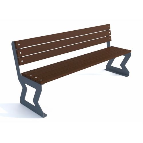 Tērauda soliņš ar atzveltni un koka dēlīšiem (7gab.). Izmēri: garums 1820mm, sēdekļa augstums 485mm kopējais augstums 830mm, sēdekļa dziļums 450mm, kopējais dziļums 490mm. Metāla detaļas cinkotas un krāsotas RAL tonī (pieejamie toņi: melna RAL 9005; grafīta pelēka RAL 7021; sudraba pelēka RAL 9006; pelēka RAL 9007; brūna RAL 8011; zaļa RAL 6018). Pieejams arī nerūsējošā tērauda variants (pēc pieprasījuma). Stiprināms pie pamatnes ar skrūvēm vai betonējams. Koka dēlīšu pieejamie toņi: gaišs ozols vai palisandrs (tumši brūns) – pēc izvēles. Metāla konstrukcija no 8mm lokšņu materiāla. Koka dēlīšu līstes 1800x90x37mm.