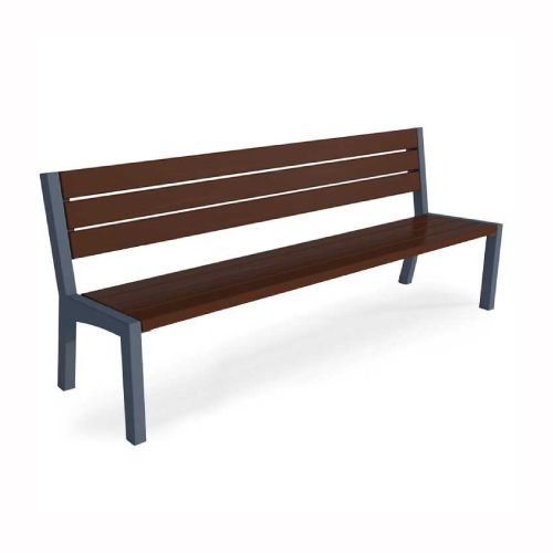 Tērauda soliņš ar atzveltni un koka dēlīšiem (7gab.). Izmēri: garums 1900mm, kopējais augstums 780mm, kopējais dziļums 700mm. Metāla detaļas cinkotas un krāsotas RAL tonī (pieejamie toņi: melna RAL 9005; grafīta pelēka RAL 7021; sudraba pelēka RAL 9006; pelēka RAL 9007; brūna RAL 8011; zaļa RAL 6018). Pieejams arī nerūsējošā tērauda variants (pēc pieprasījuma). Stiprināms pie pamatnes ar skrūvēm vai betonējams (pēc izvēles). Koka dēlīšu pieejamie toņi: gaišs ozols vai palisandrs (tumši brūns) – pēc izvēles. Konstrukcija no 40x40x4mm tērauda kvadrātcaurules un 3mm metāla lokšņu materiāla. Koka dēlīšu līstes 1800x90x37mm.