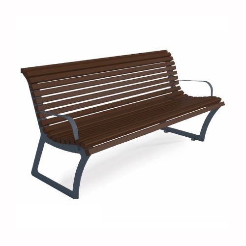 Tērauda soliņš ar atzveltni un roku balstiem, 1800mm (cinkots/krāsots RAL tonī)