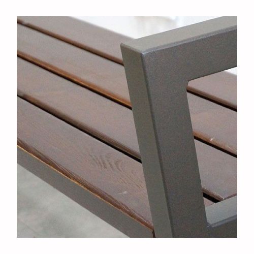 Tērauda soliņš ar atzveltni un koka dēlīšiem (4gab.). Izmēri: garums 1900mm, kopējais augstums 810mm, sēdekļa augstums 440mm, sēdekļa dziļums 420mm. Metāla detaļas cinkotas un krāsotas RAL tonī (pieejamie toņi: melna RAL 9005; grafīta pelēka RAL 7021; sudraba pelēka RAL 9006; pelēka RAL 9007; brūna RAL 8011; dzeltena RAL 1023; zaļa RAL 6018; sarkana RAL 3002; oranža RAL 2000. Pieejams arī nerūsējošā tērauda variants (pēc pieprasījuma). Stiprināms pie pamatnes ar skrūvēm vai betonējams. Koka dēlīšu pieejamie toņi: gaišs ozols vai palisandrs (tumši brūns) – pēc izvēles. Konstrukcija no 45x45x2mm tērauda kvadrātcaurules. Koka dēlīšu līstes 1800x90x37mm.