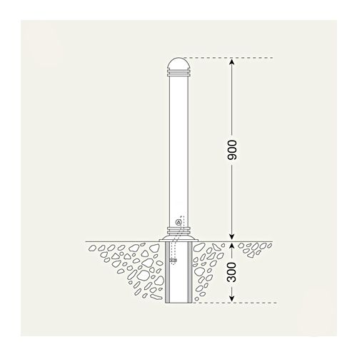 Tērauda stabs GOTHA ar dekoratīviem gredzeniem, ar trijstūrveida atslēgu, ar 1 ķēdes cilpu, betonējams. Krāsa: RAL 7016 (antracīta pelēka). Izmēri: augstums virs pamatnes 900mm, augstums zem pamatnes 300mm. Svars: 14,5kg.