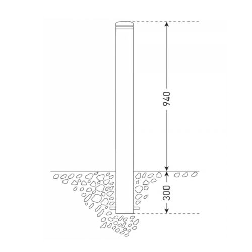 Tērauda stabs LEIPZIG, betonējams, d=90mm, h=940mm (300mm zem pamatnes)