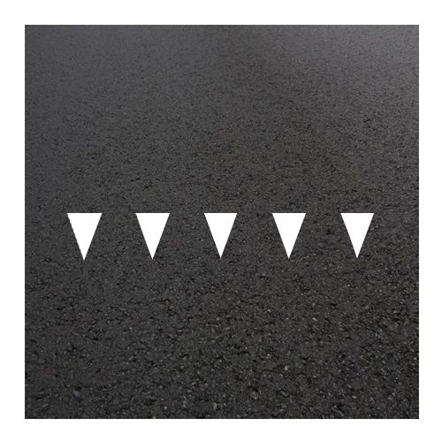 Termoplastikāta trijstūris. Karsējama. Krāsa: balta (RAL 9016). Izmēri: platums 500mm, garums 600mm. Piemērota ceļu, ielu, autostāvvietu marķēšanai (ceļa līnijas, simboli u.c.). Iepakojumā 25gab. (cena norādīta par gab.!). Svars kastei: 19.5kg.