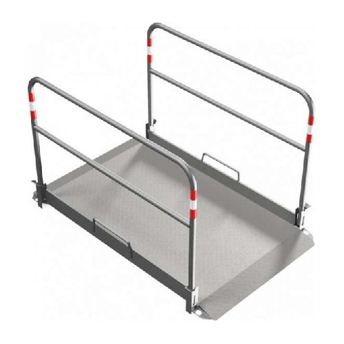 Tiltiņš tranšeju pārejām. Izmēri: platums 1m, garums 1.7m. Drošai grāvju un kanālu šķērsošanai. Izgatavots no alumīnija. Rampa ratiņkrēsliem, ratiņiem u.c. Grīdas pārsegs no pretslīdes alumīnija plāksnes (3/4mm). Sānu barjeras ar sarkanbaltām atstarojošām joslām. Abas margas nolokāmas. Rokturi abās pusēs (nodrošina ergonomisku pārvietošanu). Slodze: 200kg/m². Svars: 34kg.