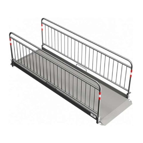 Tiltiņš tranšeju pārejām ar drošības margām. Izmēri: platums 1m, garums 3.2m. Drošai grāvju un kanālu šķērsošanai. Izgatavots no alumīnija. Rampa ratiņkrēsliem, ratiņiem u.c. Grīdas pārsegs no pretslīdes alumīnija plāksnes (3/4mm). Sānu margas drošai pāriešanai. Uz stūru caurulēm sarkanbalta atstarojoša lenta. Abas margas nolokāmas. Rokturi abās pusēs (nodrošina ergonomisku pārvietošanu). Slodze: 200kg/m². Svars: 68kg.