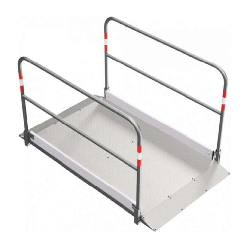 Tiltiņš tranšeju pārejām. Izmēri: platums 1m, garums 1.7m. Drošai grāvju un kanālu šķērsošanai. Cinkota tērauda rāmis, rampa ratiņkrēsliem, ratiņiem u.c. Grīdas pārsegs no pretslīdes alumīnija plāksnes (4/5mm). Sānu barjeras ar sarkanbaltām atstarojošām joslām. Abas margas nolokāmas. Slodze: 200 kg/m². Svars: 54kg.