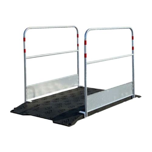 Tiltiņš tranšeju pārejām. Izgatavots no PVC. Izmēri: platums 1m, garums 1.7m. Drošai grāvju un kanālu šķērsošanai. Grīdas virsma no neslīdošas plastmasas. Sānu margas no cinkota tērauda (aprīkotas ar sarkanbalti sarkanu atstarojošu lentu), kuras var ievietot sāniski. Rokturi abās pusēs (nodrošina ergonomisku pārvietošanu). Slodze: 1000kg. Svars: 35kg.
