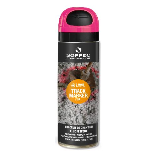 TRACK MARKER luminiscējoša krāsa marķēšanai (aerosols), rozā, 500ml. Kastē 12gab. Izmantojama arī uz mitrām virsmām. Ātri žūstoša (~ 10min.). Piemērota īstermiņa lietošanai – 3 mēnešu noturība. Piemērota marķēšanai uz asfalta, betona, akmens, grants, zemes, kokiem, smiltīm u.c. Izmantojama temperatūrā no -20 līdz + 50 grādiem pēc Celsija. Izturīgs aizsargvāciņš. Ar 1 aerosola baloniņu var noklāt ~35m (2cm platumā).