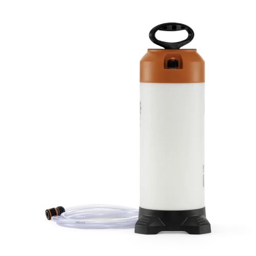 Hermētiska ūdens tvertne. Komplektā ar šļūteni. Piemērota Husqvarna spēka zāģiem. Papumpējot rokturi dažas reizes, tiek iegūts nepieciešamais spiediens. Ideāla tvertne, ja tuvumā nav ūdens padeves. Tilpums: 10L. Izmēri: augstums 637mm, garums 254mm, platums 229mm. Svars: 2.35kg.