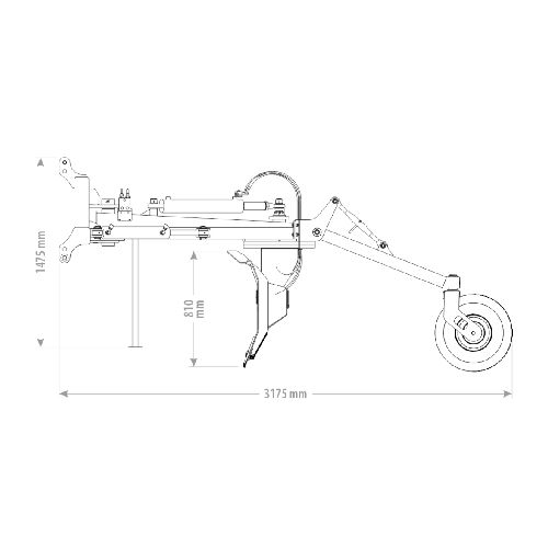 Velkamā sniega lāpsta – greideris (smagā tipa, ar ar 7 grādu pagriešanas leņķi uz katru pusi ). Izmēri: platums 3000mm, lāpstas augstums 810mm, kopējais augstums 1475mm, garums 3175mm. Labā-kreisā leņķa regulēšana. Riteņu augstuma regulēšana. Trīspunktu sakabes savienojums (2.kategorija). HB500 metāla nazis (platums 200mm, biezums 12mm). Velkamās sniega lāpstas ribu biezums +/-8mm, karkasa metāla materiāla biezums +/-6mm. Komplektā profilēta plāksne. Horizontālālais regulējums. Hidrauliskais akumulators. Svars: 715kg.