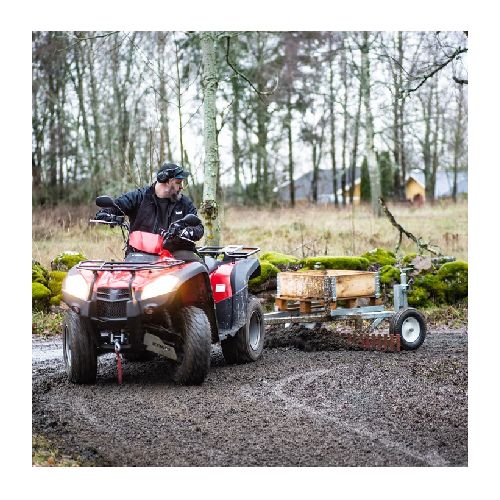 Velkamais ceļa greideris uz 2 riteņiem. Stiprināms pie kvadracikla vai maziem traktoriem. Darba platums 1800mm. Greidera naža garums 1930mm. Komplektā puspaletes kravas kaste. Naža leņķis ir individuāli regulējams ar riteņiem (par 15cm), lai pielāgotos ceļa slīpumam. Izturīgi riteņi, pilnībā cinkots rāmis. Stiprināšanai pie tehnikas rotējošs 50mm lodveida savienojums. Greideris piemērots pagalmu, laukumu, izjādes laukumu, dažādu celiņu nolīdzināšanai.