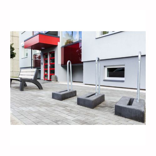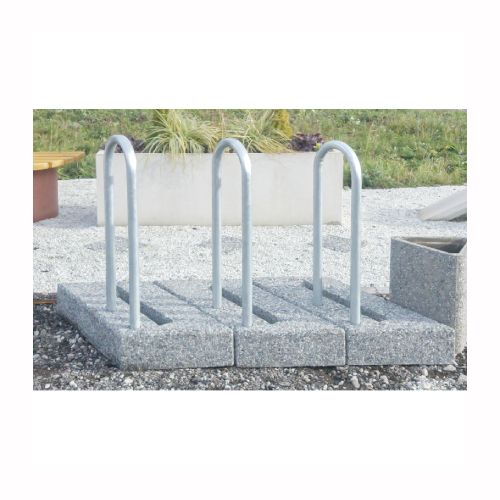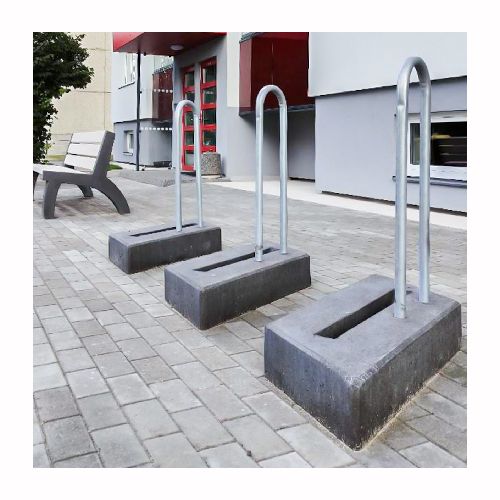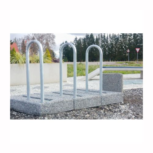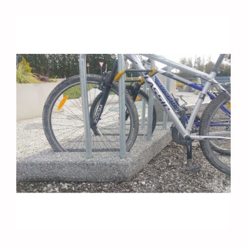 Velosipēdu statīva modulis. Izgatavots no betona ar metāla cauruli sānā. Piemērots 1 velosipēdam. No vairākiem moduļiem var veidot plašāku velosipēdu novietni. Izmēri: garums 850mm, platums 700mm, augstums 1000mm. Svars: 115kg. Iespējamie betona toņi: P101, P103, P106, V101, V103, V104.