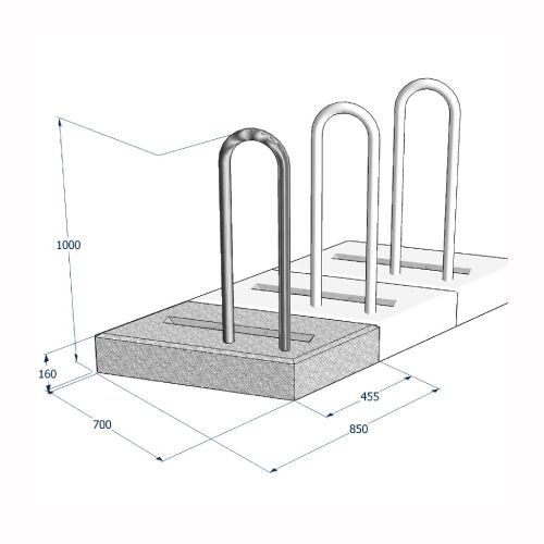 Velosipēdu statīva modulis (betona, metāla caurule sānā), 850×700×1000mm