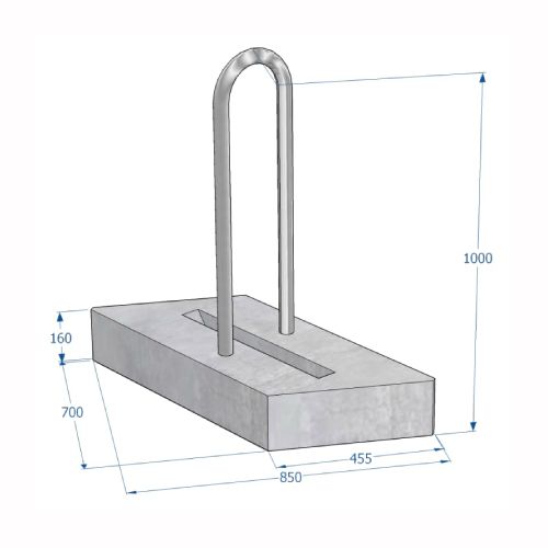 Velosipēdu statīva modulis (betona, metāla caurule vidū), 850×700×1000mm