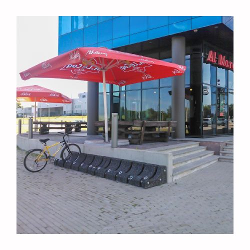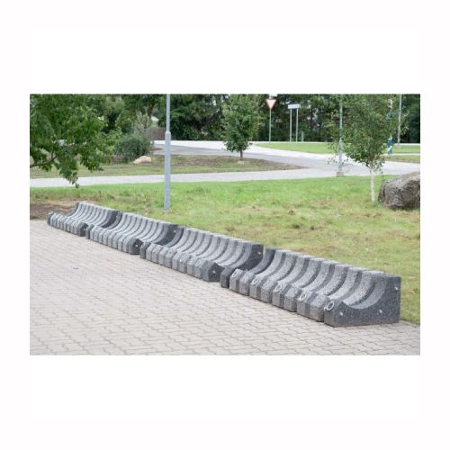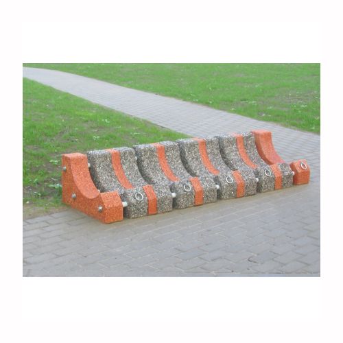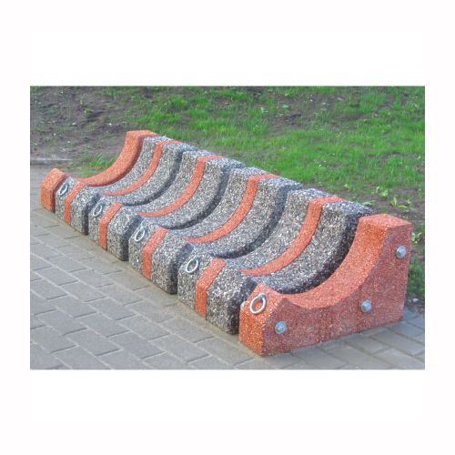 Velosipēdu statīvs 5 velosipēdiem. Izgatavots no betona. Piemērots 5 velosipēdam. Izmēri: garums 2100mm, platums 650mm, augstums 390mm. Svars: 700kg. Iespējamie betona toņi: P101, P103, P106, P107, P108, P109, P201, P202, P203, P301, P303, P401, P403, P405, P406, P410, P411, P412.