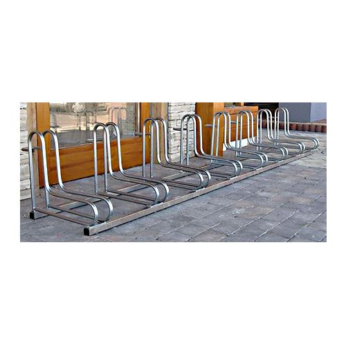 Velosipēdu statīvs 8 velosipēdiem. Iespējams regulēt novietošanas leņķi no 45-90 grādiem.Cinkots, iespējams krāsot par papildu samaksu. Izmēri: garums:306cm dziļums: 42cm augstums: 42cm attālums starp velosipēdiem: 42cm Svars: 35kg