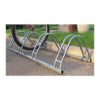 Velosipēdu statīvs 4 velosipēdiem. Velosipēdu novietošana iespējama no abām velostatīva pusēm. Cinkots, iespējams krāsot par papildu samaksu. Izmēri: garums 138cm, kopējais dziļums 45cm, augstums 30cm, attālums starp velosipēdu riepu centriem 36cm, caurules diametrs 2cm, platums riepas ievietošanai 6cm, svars 8kg.
