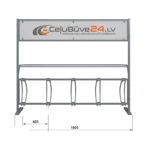 Velosipēdu statīvs HARRY 5 ar reklāmas stendu (cinkots), 1800mm [KRO]