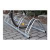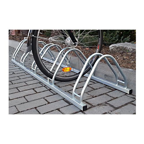 Velosipēdu statīvs 5 velosipēdiem. Velosipēdu novietošana iespējama no abām velostatīva pusēm. Cinkots, iespējams krāsot par papildu samaksu. Izmēri: garums 160cm, kopējais dziļums 45cm, augstums 30cm, attālums starp velosipēdu riepu centriem 36cm, caurules diametrs 2cm, platums riepas ievietošanai 6cm, svars 10kg.