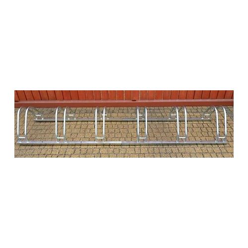 Velosipēdu statīvs 6 velosipēdiem. Velosipēdu novietošana iespējama no abām velostatīva pusēm. Cinkots, iespējams krāsot par papildu samaksu. Izmēri: garums 222cm, kopējais dziļums 45cm, augstums 30cm, attālums starp velosipēdu riepu centriem 36cm, caurules diametrs 2cm, platums riepas ievietošanai 6cm, svars 12kg.
