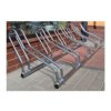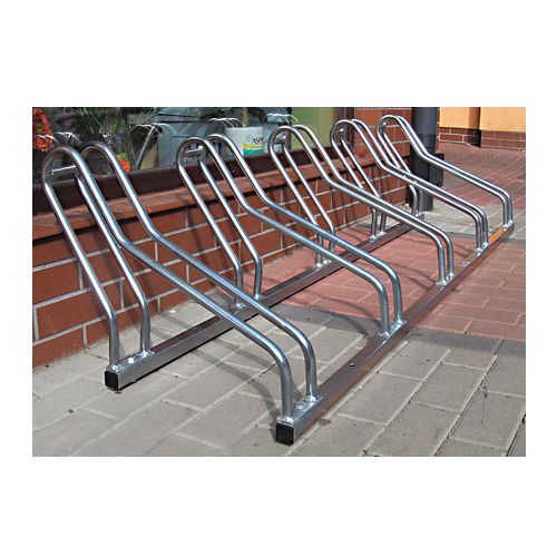Velosipēdu statīvs 5 velosipēdiem. Iespējams regulēt novietošanas leņķi no 45-90 grādiem.Cinkots, iespējams krāsot par papildu samaksu. Izmēri: garums:180cm dziļums: 55cm augstums: 43cm attālums starp velosipēdiem: 42cm Svars: 15kg