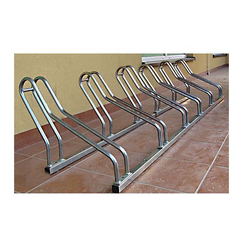 Velosipēdu statīvs 6 velosipēdiem. Iespējams regulēt novietošanas leņķi no 45-90 grādiem.Cinkots, iespējams krāsot par papildu samaksu. Izmēri: garums: 222cm dziļums: 55cm augstums: 43cm attālums starp velosipēdiem: 42cm Svars: 20kg