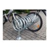 Spirālveida velosipēdu statīvs (uz 3 kājām), cinkots. Paredzēts 5 velosipēdu novietošanai. Cinkots, iespējams krāsot par papildu samaksu. Izmēri: garums: 150cm, dziļums: 40cm, augstums: 50cm. Caurules d=33,7mm, spirāles d=40cm. Stiprināšana pie pamatnes ar skrūvēm. Velosipēdus iespējams novietot no abām pusēm.