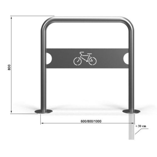 Velosipēdu statīvs (U-profila) ar lāzera izgrieztu logotipu. Pieejamie izmēri: garumā 600mm, 800mm vai 1000mm; augstums 800mm. Griešanas plātnes izmērs atkarīgs no statīva platuma, plātnes augstums 200mm. Logotipu/simbolu var novietot pa vidu, kreisajā pusē vai labajā pusē – pēc vēlēšanās (nepieciešams logotips vai simbols vektorgrafikas failā). Velosipēdu novietošana iespējama no abām velosipēdu statīva pusēm. Pieejamie materiāli: cinkots tērauds, nerūsējošais tērauds vai cinkots un krāsots tērauds. Montāžas versijas: betonējams vai skrūvējams pie pamatnes ar skrūvēm. Statīva cenā iekļauta iespēja izgriezt logotipu/simbolu vai rakstu pēc sava dizaina.
