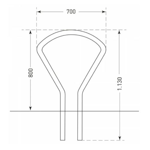 Velosipēdu statīvs VUELTA. Betonējams. Divpusējs (var novietot velosipēdu abās statīva pusēs). Karsti cinkots un krāsots antracīta pelēks DB 703 tonī. Izmēri: kopējais garums 1130mm, garums virs zemes 800mm, garums zem pamatnes 350mm, paltums 700mm. Izgatavots no d=48mm metāla caurules. Velo statīvs pieejams arī cinkotā (nekrāsotā) versijā. Svars: 12.5kg.